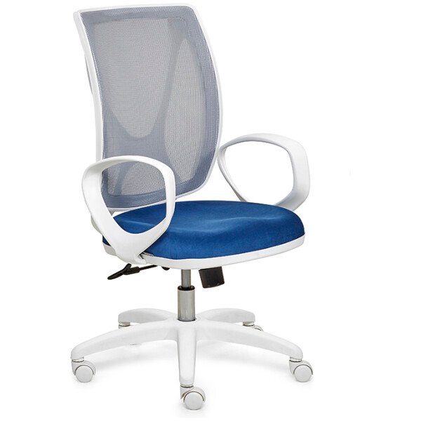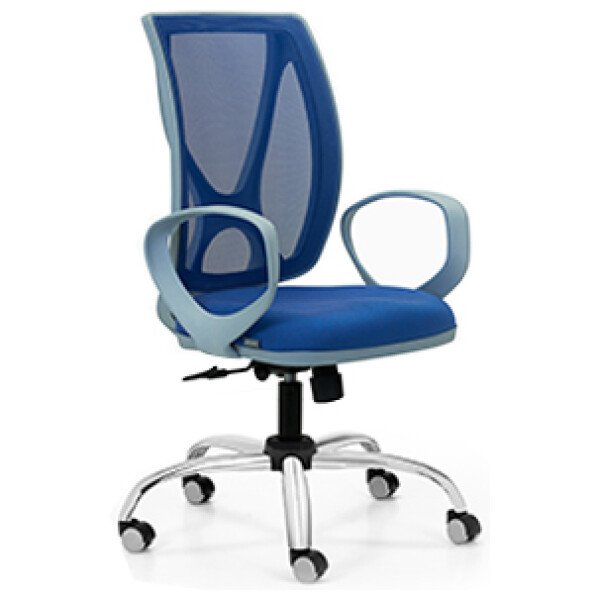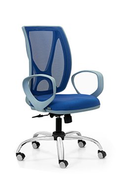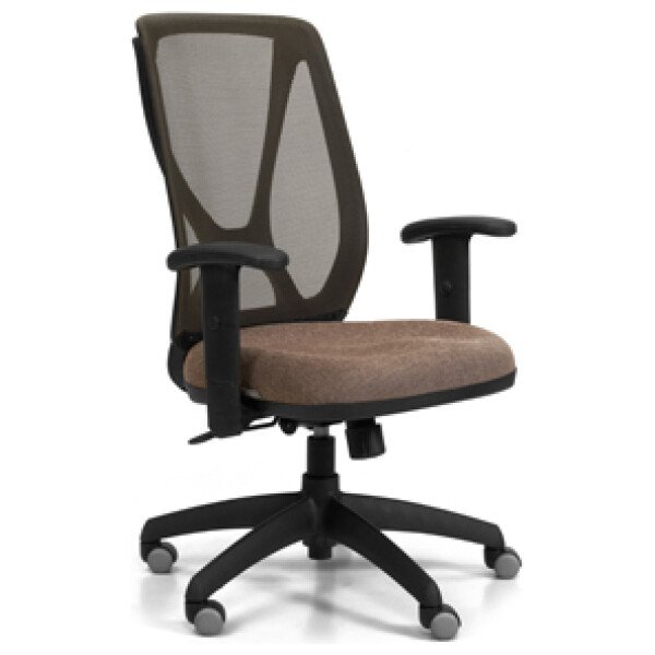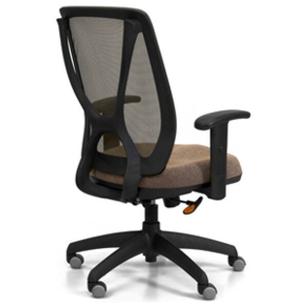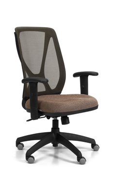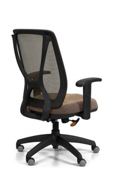 Respaldo tapizado en tela de  color gris perla, negro, azul, naranja, rojo y visón. Asiento de espuma inyectada. Mecanismo A-Syncro con múltiples posiciones de bloqueo. Regulación neumática de altura del asiento. Opcionales: apoyabrazos y base cromada.