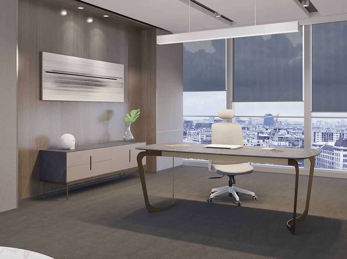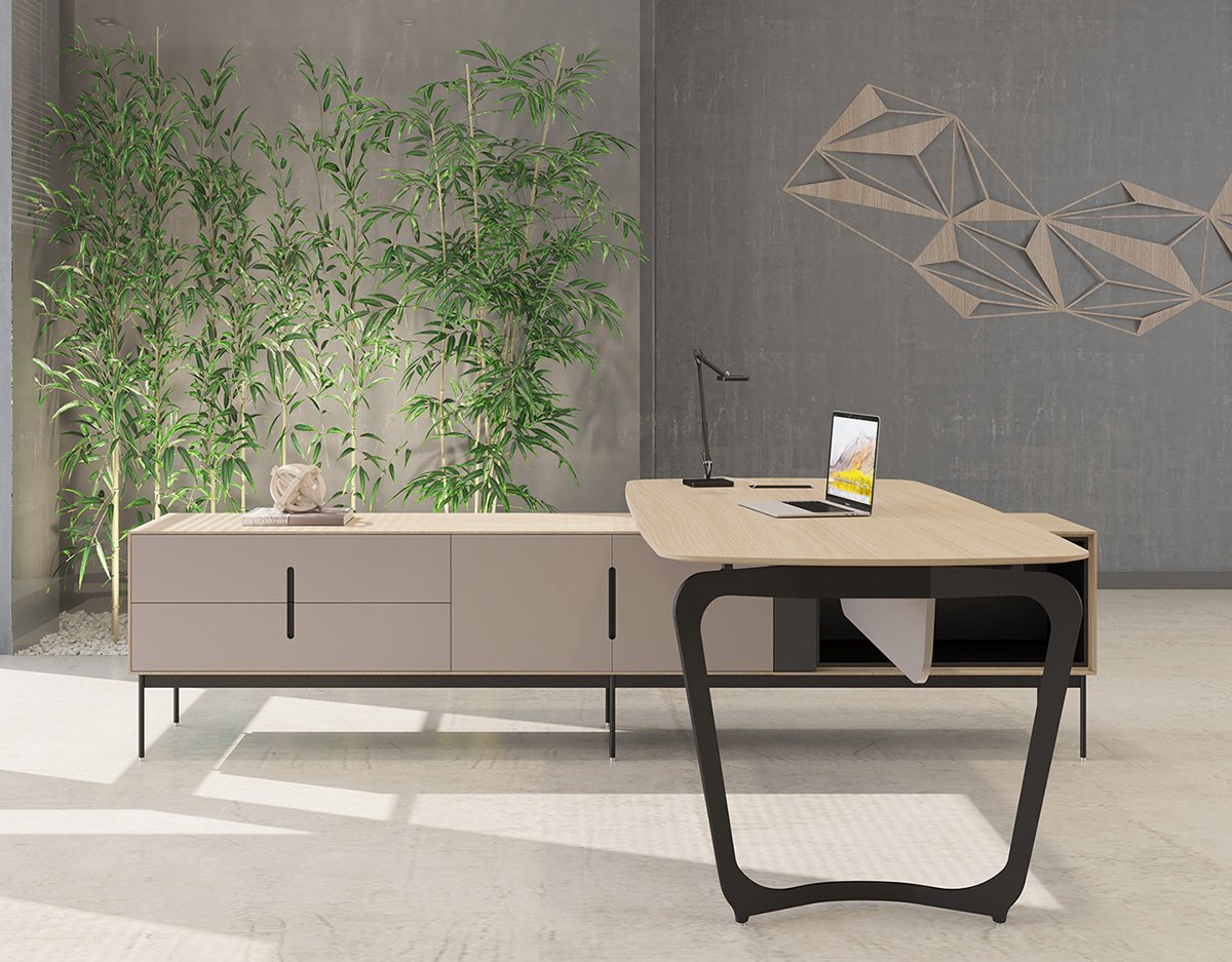 es una colección de piezas exclusivas con una estética contemporánea que refleja la elegancia y sofisticación de los ambientes profesionales. Cada mueble está diseñado con líneas puras y vanguardistas, sin ornamentos ni detalles innecesarios, lo que le da una apariencia minimalista y moderna.