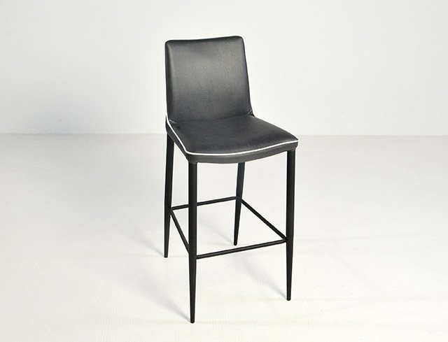 Banqueta de estructura metálica, asiento y respaldo tapizado. Las terminaciones son a elección. Altura al asiento: 74cm
