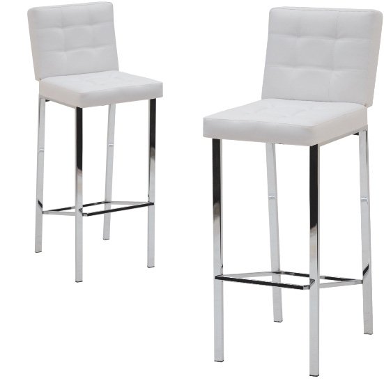 Estructura de caño cuadrado cromado. Asiento y respaldo con interno de madera tapizado ecocuer.