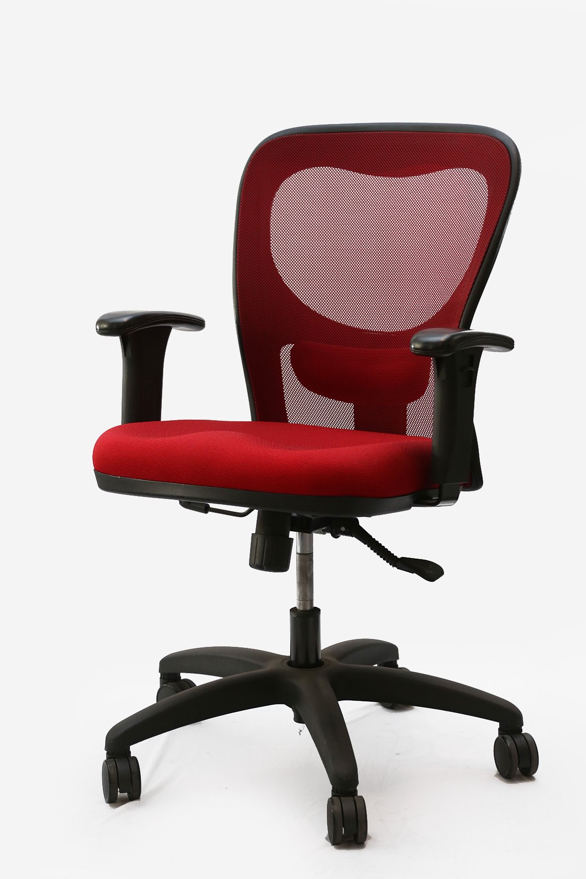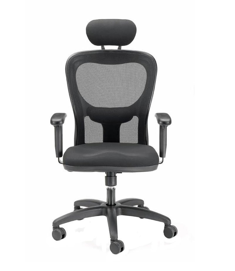 Tapizado en tela o ecocuer. Respaldo tapizado en tela de red color gris perla, negro, azul, naranja, rojo y visón. Apoyo Lumbar graduable en 7 posiciones y regulación neumática de altura del asiento. Espuma de asiento inyectada en poliuretano, interno de madera. A-SYNCRO: Mecanismo oscilante de respaldo con posiciones de ajuste y control de tensión. Base compuesta por nylon y fibra de vidrio de alta resistencia.