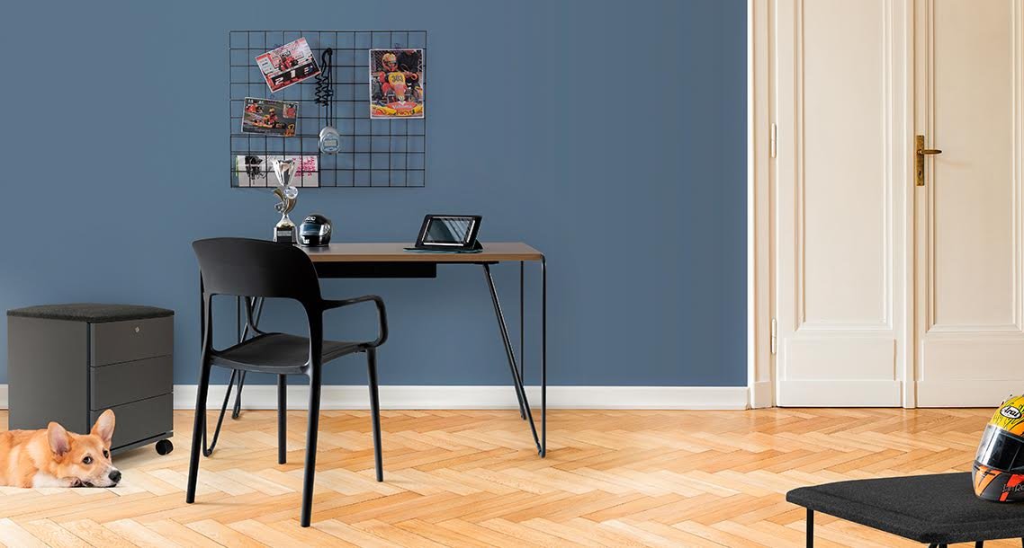Flat está diseñada con las medidas exactas para desempeñar cualquier rol de oficina y ajustarse a cualquier espacio de una casa. Su diseño minimalista de carácter racional le aporta esa multifuncionalidad del Home Office que llegó para quedarse. Es flexible e informal. Y viene en una extensa paleta de colores de patas que se combinan con tableros en blanco y grafito para potenciar cualquier diseño interior de una casa.