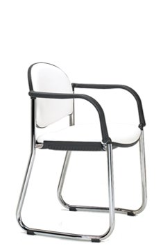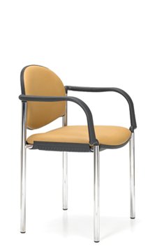 Tapizado en tela o ecocuer. Espuma de alta densidad. Base compuesta por nylon y fibra de vidrio de alta resistencia. Opcionales: Apoyabrazos / Base cromada / Base plástica con alma de acero / Kit apoyapies / Estructura trineo negra o cromada / Estructura 4 patas fija negra o cromada.