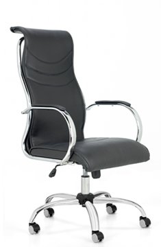 Tapizado en tela o ecocuer. Espuma de alta densidad. Base cromada. Sistema basculante con control de tensión. Regulación neumática de altura del asiento. Apoyabrazos cromados.