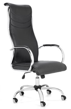 Tapizado en tela o ecocuer, espuma de alta densidad, base cromada. Sistema basculante con control de tensión, regulación neumática de altura del asiento. Apoyabrazos cromados.