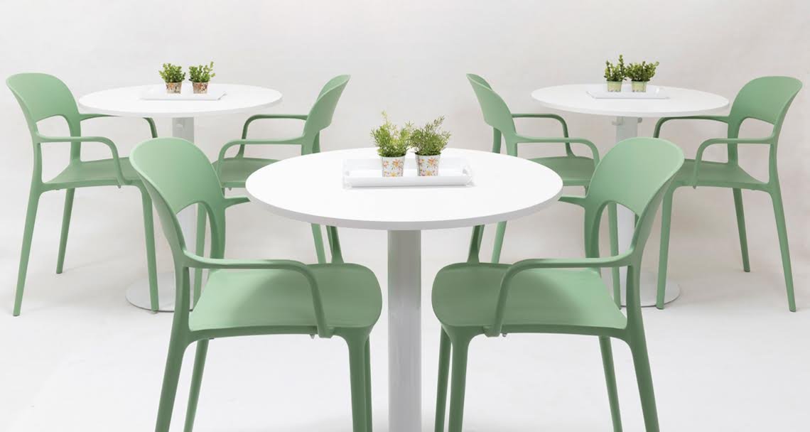 Es una línea de mesas exclusiva para espacios gastronómicos o los nuevos espacios de trabajo Coffice o Work Café. Es resistente y por lo tanto duradera. Es de fácil