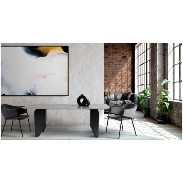 Crön es el resultado de un proceso que elimina lo superfluo. Una síntesis armoniosa de forma y función resuelta con una cuidadosa y selectiva utilización de materiales donde la piedra sinterizada es el principal atractivo. La ligereza de su tapa crea la ilusión de estar flotando sobre sus dos apoyos de finas láminas metálicas. El efecto es un potente impacto visual: elegante, simple, expresivo.