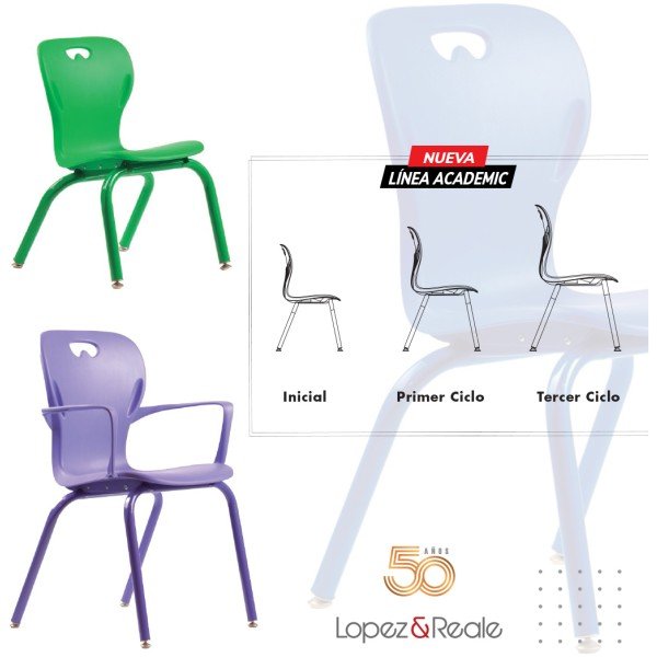 La linea Academic cuenta con tres versiones: Inicial, Primer Ciclo y Tercer Ciclo pensadas en los diferentes tipos de usuarios. Con o sin brazos, con mesa y en versión tandém.