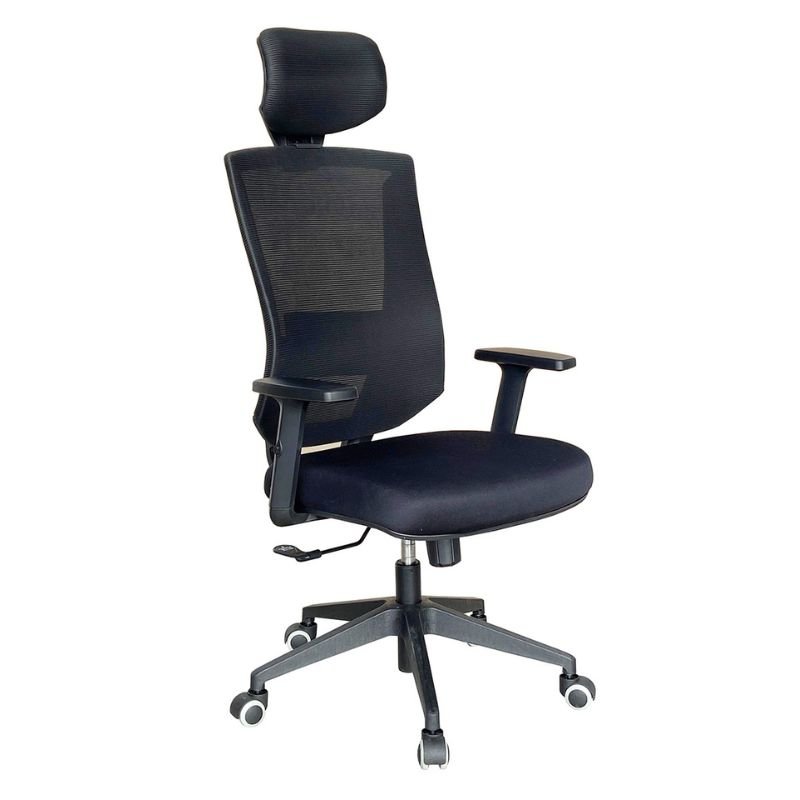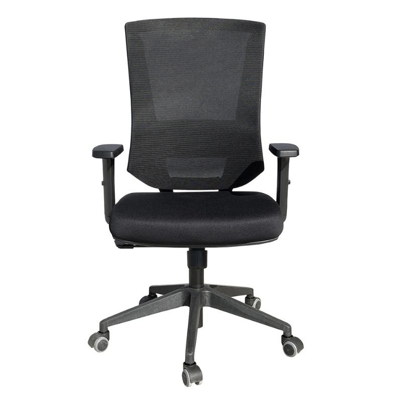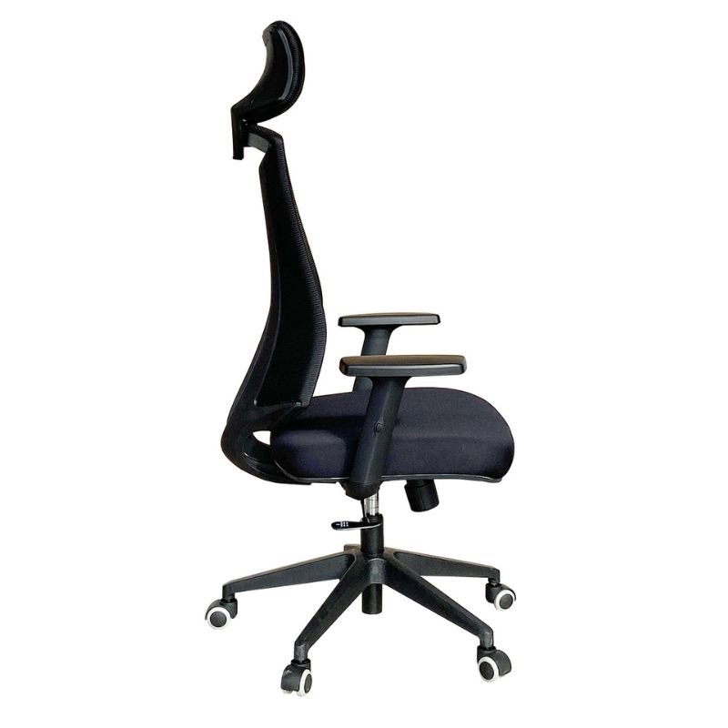Trama Mesh Air black, con elasticidad adaptativa y soporte lumbar regulable en altura