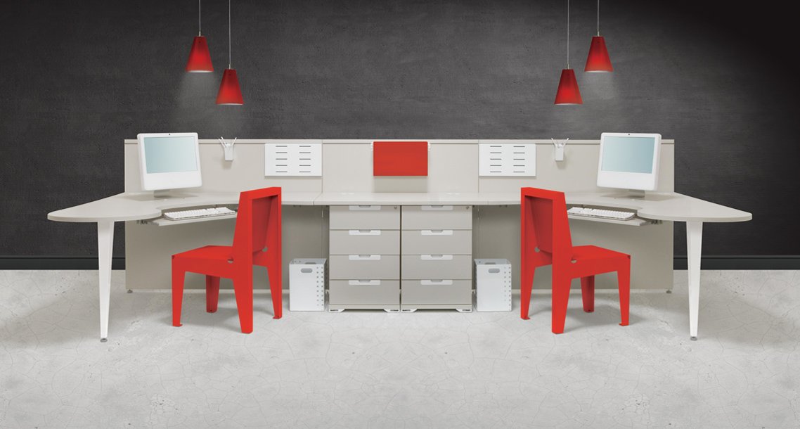 Brinda respuesta eficiente a la búsqueda de racionalidad en oficinas. Posee una amplia capacidad de prestaciones. Es extremadamente flexible a todo tipo de layout, tanto individual como colectivo. Una línea de simpleza estructural resuelta mediante el binomio melamina-metal.