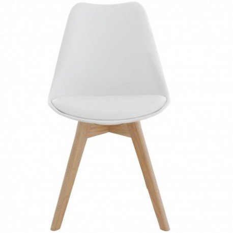 Diseñada por Eero Saarinen. Asiento de PP Blanco. Almohadón de Eco. Cuero Blanco. Base Madera Natural. Medidas: 44 cm x 53 cm x 85 cm. Para Interior y exterior.
